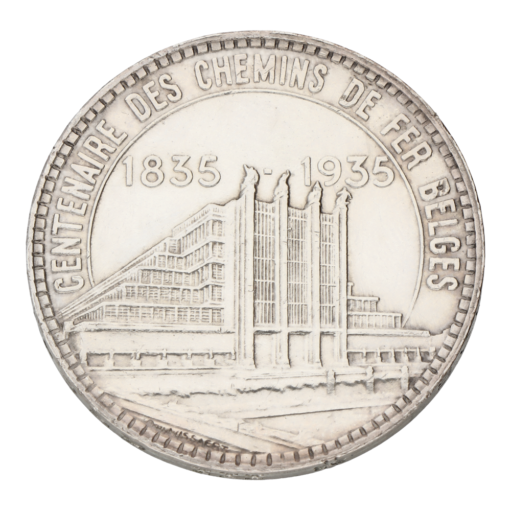 Frappée en 1935, cette pièce en argent servait à la fois de monnaie légale et de commémoration de l’exposition. Elle symbolise la renaissance d’un pays sortant de la crise économique et retrouvant son dynamisme sur la scène internationale.