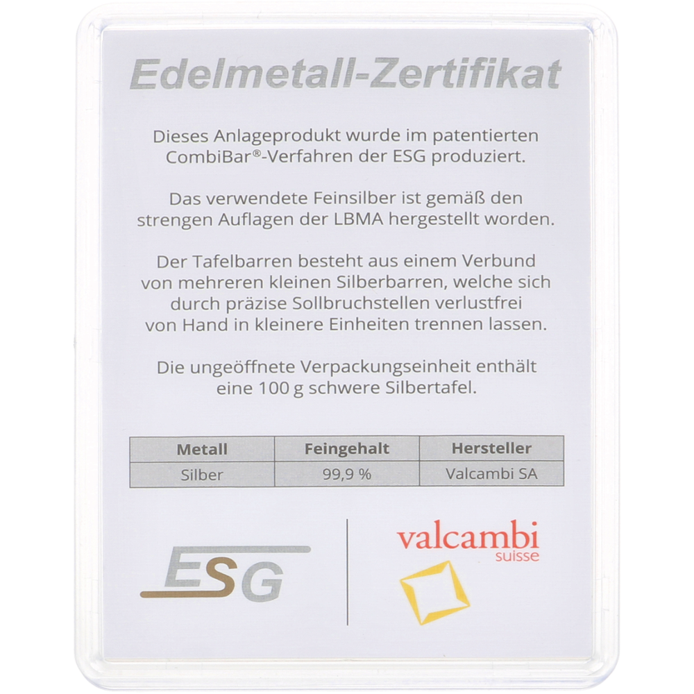 La société suisse Valcambi a été fondée en 1961 et est certifiée LBMA. En 2011, Valcambi a obtenu la licence exclusive pour fabriquer le CombiBar. Le CombiBar est destiné au marché international et les lingots sont frappés selon la norme Good Delivery.