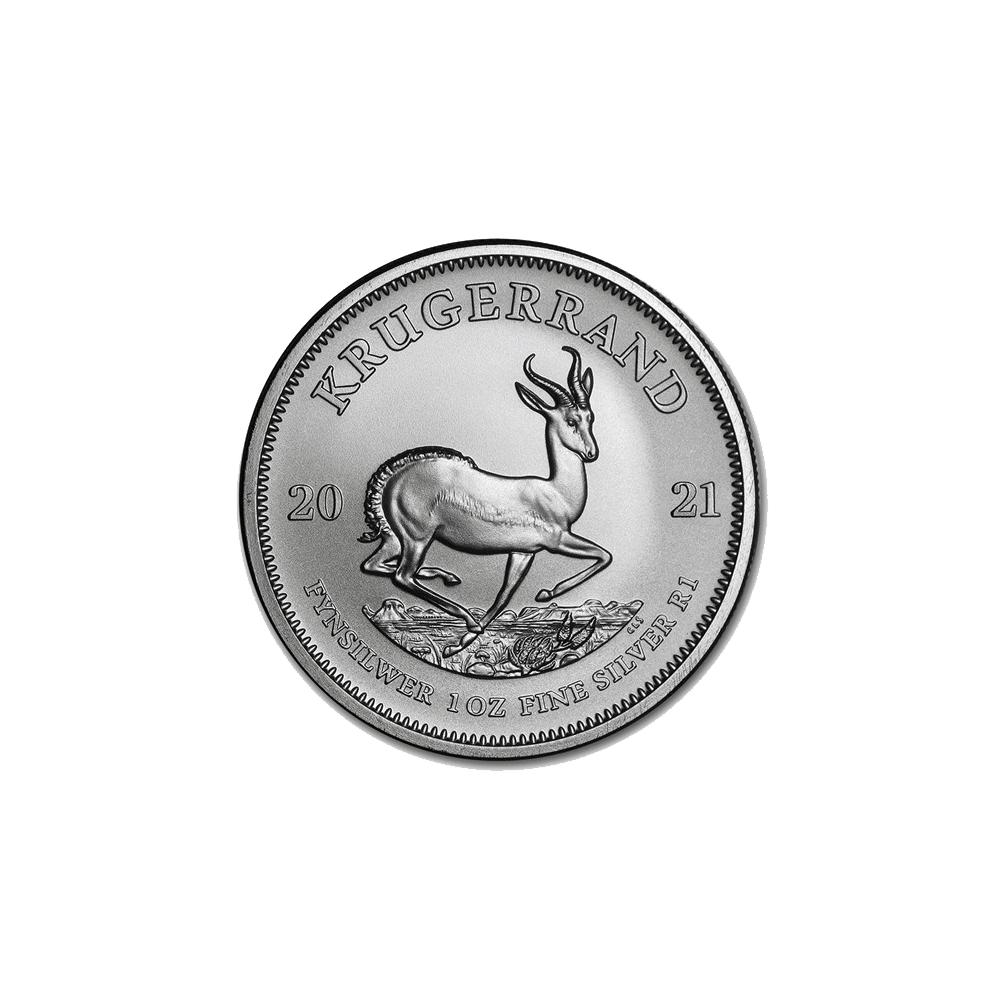 La Krugerrand en argent est émise par la Monnaie sud-africaine. Elle contient 99,99 % d'argent pur et pèse 1 once troy. La Krugerrand en or fait partie des pièces d’investissement les plus connues et est aussi émise en argent afin de proposer son équivalent sur le marché de l'argent.
