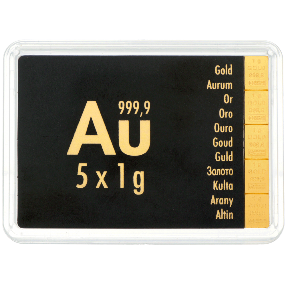 Vous souhaitez acheter le Valcambi CombiBar avec 5 lingots d’or de 1 g ? Le Comptoir de l’Or est l’endroit idéal. Il contient 5 lingots d’or de 1 g. Considéré comme or d’investissement, vous ne payez aucune TVA lors de son achat.