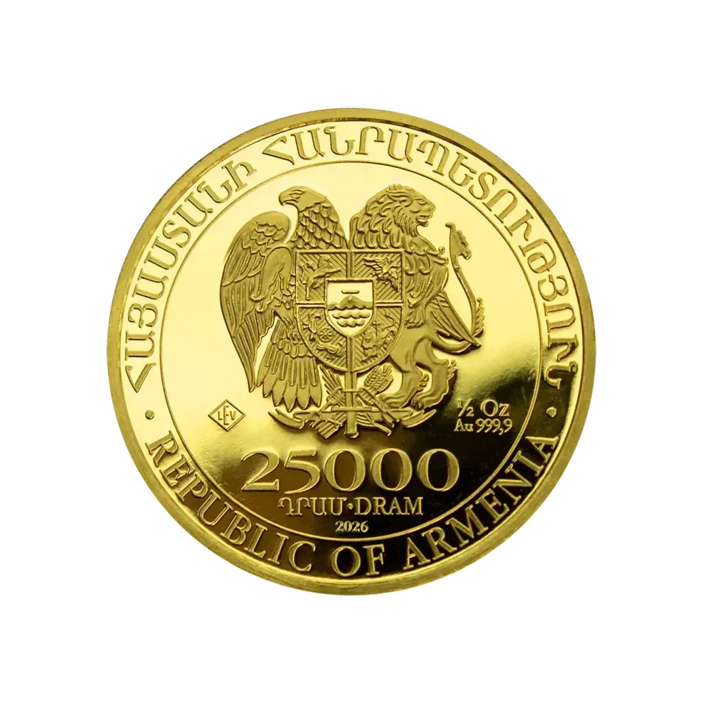 L'Arche de Noé en or de 1/2 OZ est une pièce d'or émise par la Banque centrale d'Arménie. Il s'agit d'une pièce de 1/2 once (15,5 grammes) composée d'or pur à 99,9 %. La pièce est émise chaque année depuis 2011 et ces pièces ont souvent une valeur de collection en plus de leur valeur en or.