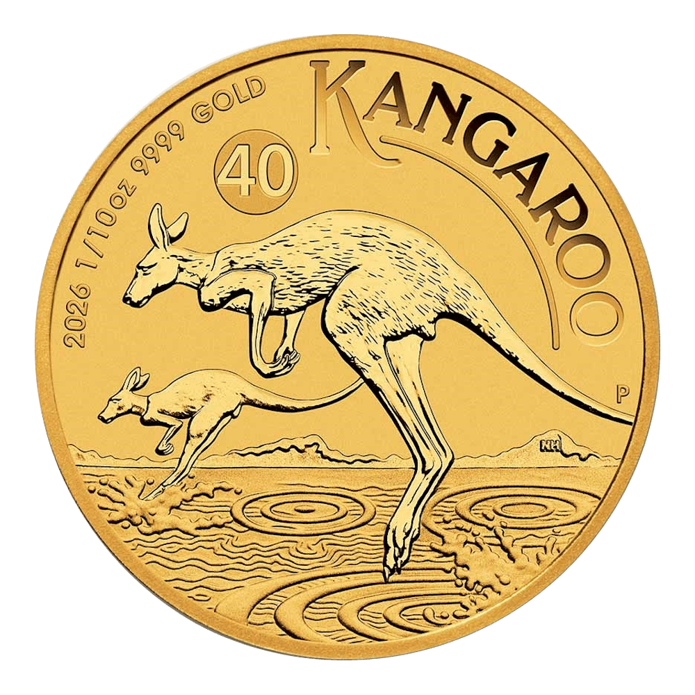 La Kangourou en or 1/10 once troy de 2026 est la pièce en or australienne indispensable à votre collection. Chaque année, la pièce présente une nouvelle conception du kangourou, ce qui la rend populaire auprès des collectionneurs. Ajoutez cette pièce de caractère en or pur d'une once troy à votre investissement ou à votre collection.