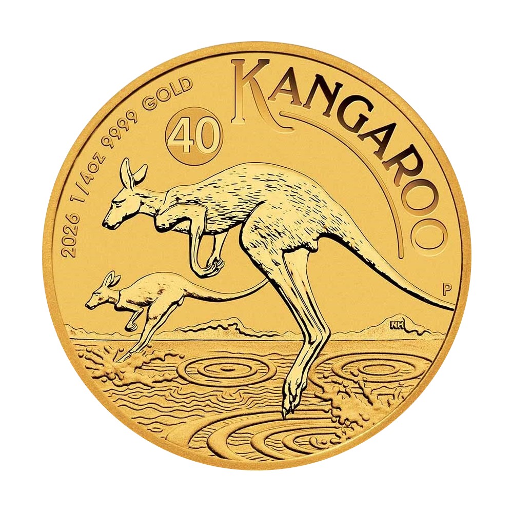 La Kangourou en or ¼ once troy de 2026 est la pièce en or australienne indispensable à votre collection. Chaque année, la pièce présente une nouvelle conception du kangourou, ce qui la rend populaire auprès des collectionneurs. Ajoutez cette pièce de caractère en or pur d'une once troy à votre investissement ou à votre collection.