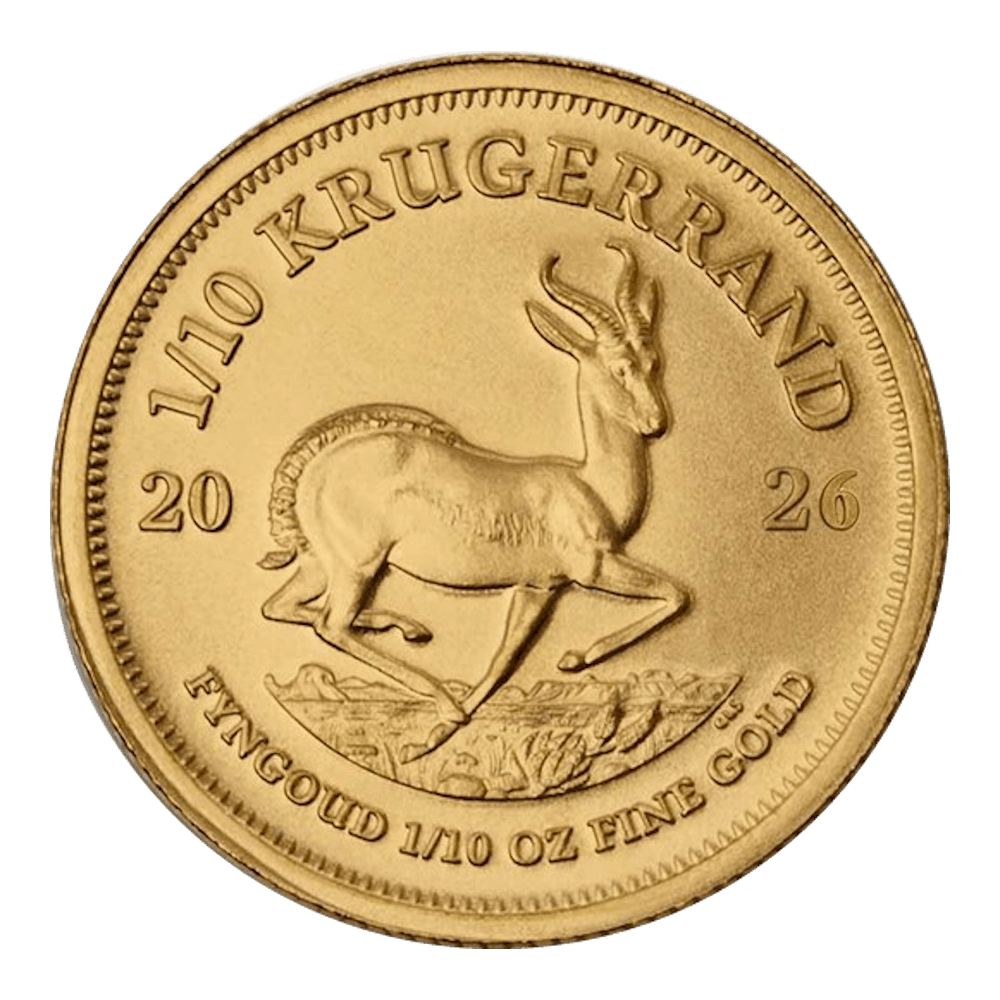 La Krugerrand en or 1/10 OZ est un choix judicieux si vous souhaitez détenir votre propre or physique, mais que vous avez un budget limité. Produit de qualité, la Krugerrand 1/10 fait partie des classiques pour les investisseurs en or en raison de sa renommée. La Krugerrand d’une once troy s’est vendue en plus de 60 millions d'onces au cours des 50 dernières années.