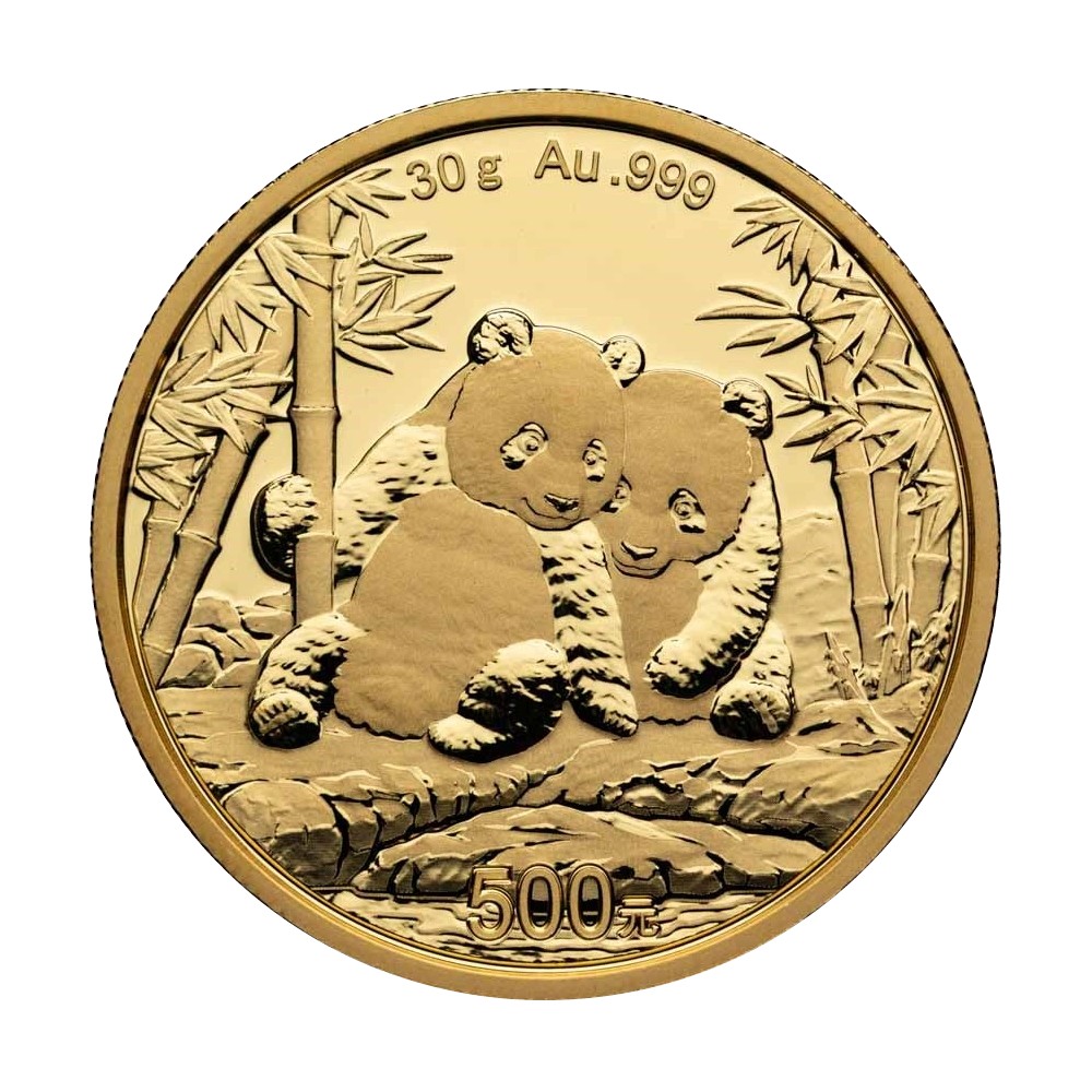 Frappée pour la première fois par la China Gold Coin Corporation, la pièce Panda en or possède une valeur nominale qui varie en fonction de son poids. La Panda de 30 grammes équivaut à 500 yuans.